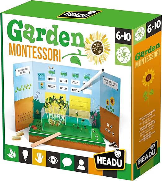 Contents: 1 tray; 1 germination tray; 1 sachet of nutrient gel; 2 seed capsules; 1 natural coloring capsule; 2 plant nutrient capsules; 1 wooden stick; 1 science journal; 1 erasable marker; 1 24-piece puzzle (45 x 30 cm); Instructions