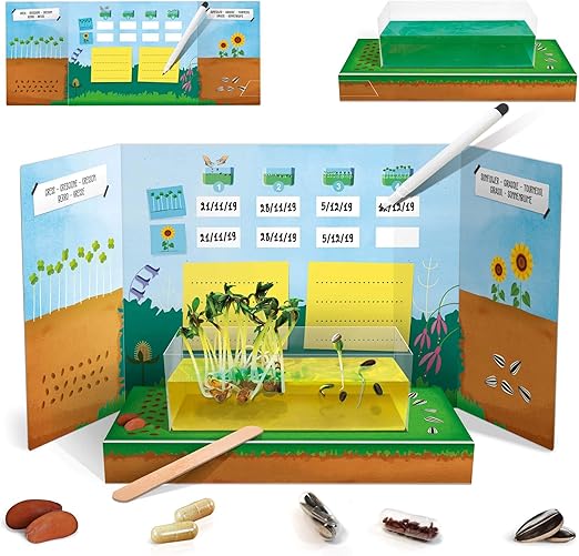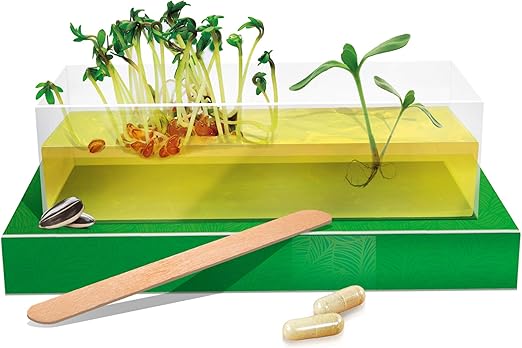 With this experimental kit, you can observe a plant’s life through all its phases! Prepare the special nutrient gel, place the seeds in the tray, observe their growth until germination, and record the changes in the science journal.
