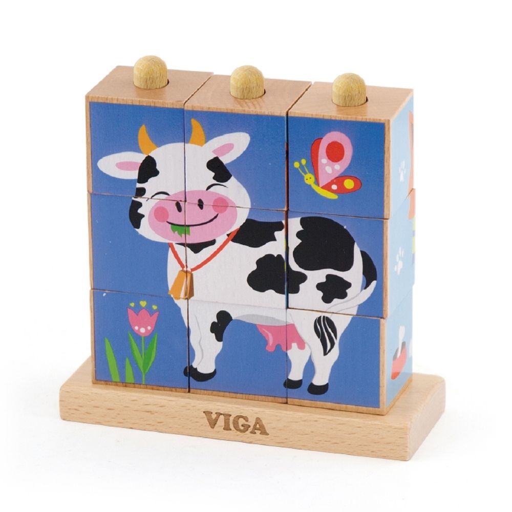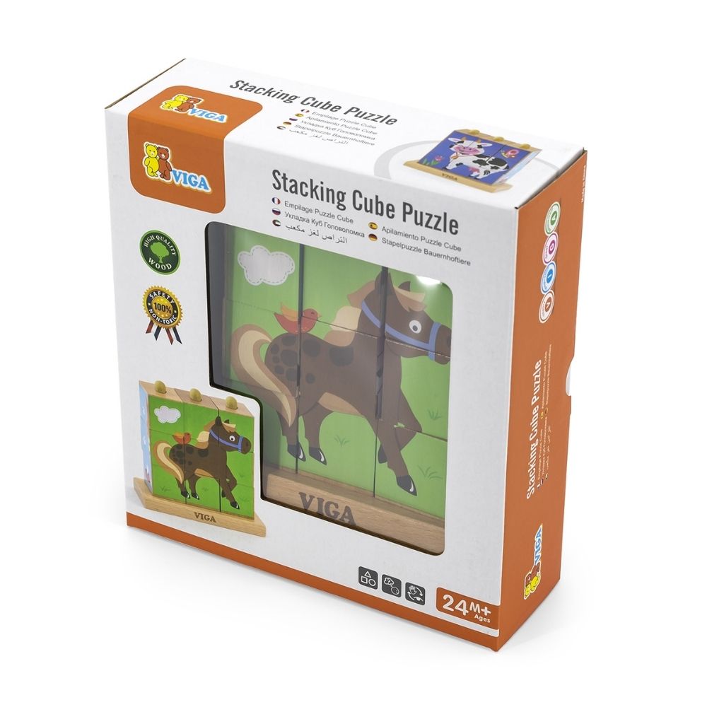 Beautifully crafted wooden puzzle features 9 wooden cubes and a baseplate with 3 verticle rods, made of quality beech wood.
