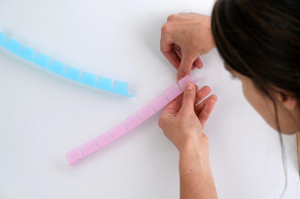 Apply 3 small balls to the outside of the track to be pressed onto a vertical surface